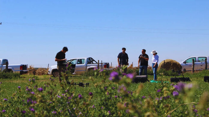 La propuesta consiste en protocolos de evaluación simples, prácticos e innovadores que a través de vuelos con drones y el uso de la plataforma de agricultura digital –Vistaguay– se pueda cuantificar la cobertura que presenta el cultivo de alfalfa en la siembra y a lo largo de su vida útil.