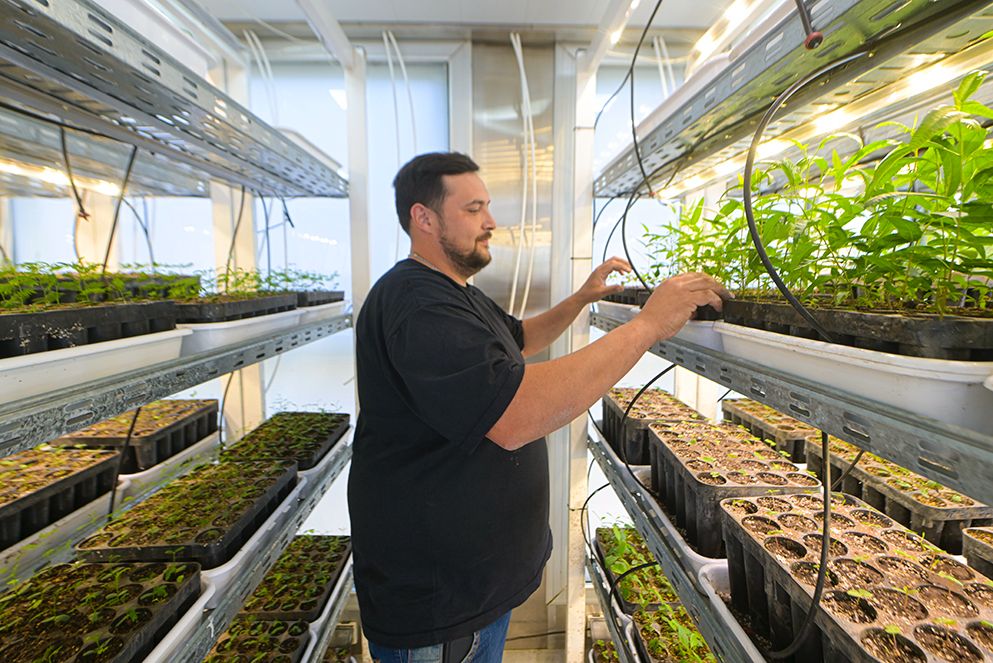 David Agüero, ingeniero agrónomo y responsable técnico de Gen Nativo, describió un aspecto clave del proceso: «La cámara de germinación funciona con temperaturas controladas, manejadas entre 22 y 30 grados. También controlamos el fotoperiodo de las plantas y su humedad».
