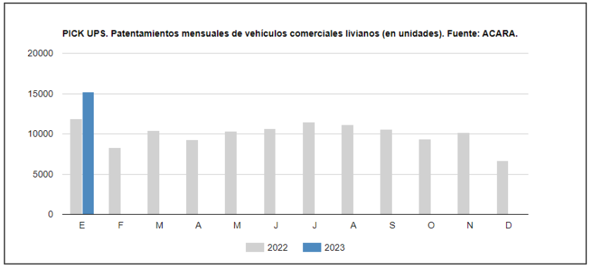 En enero, se patentaron 15.201 vehículos comerciales livianos en Argentina, con un crecimiento de +27,7% respecto a igual mes de 2021.