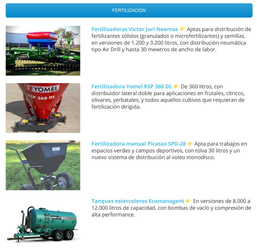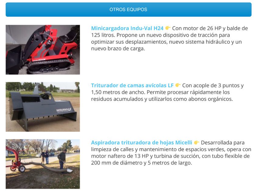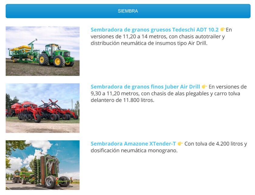 No obstante, los escasos lanzamientos concretados dejan en claro que la renovación tecnológica se viene con todo. Para muestra, bastan algunos botones. Metalfor regresó al mercado de cosechadoras. Tedeschi y Juber debutaron en el segmento de sembradoras Air Drill. Ecomanagment presentó su línea de tanques estercoleros.
