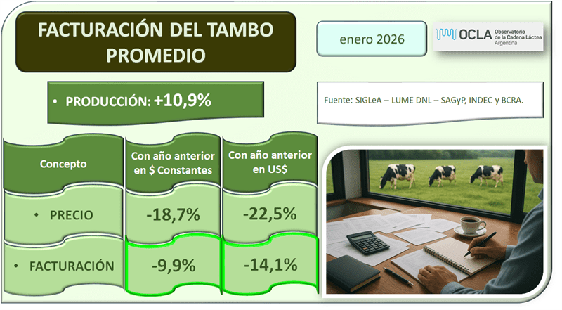 A pesar de una leve suba nominal a comienzos de 2026, los tamberos enfrentan el valor real más bajo de los últimos años, con márgenes negativos que aceleran el cierre de establecimientos. Informe del Ocla.