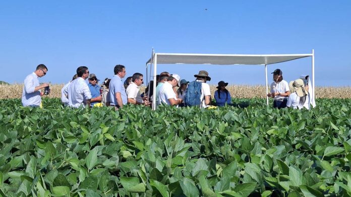 El encuentro arrancó con recorridas a campo donde 10 empresas presentaron ensayos de soja y maíz realizados por la firma Agrodesarrollos a cargo del Ing. Adrián Mitidieri y sumando una novedad: riego por goteo subterráneo. Las 10 estaciones presentaron resultados a campo y datos concretos que estuvieron a la vista de todos cuando se desplantaban la soja o el maíz para comparar el desarrollo radicular o la cantidad de vainas en soja, y la sanidad y desarrollo de las plantas, siempre comparando tratados contra testigos sin tratar. Los asistentes pudieron ver a campo, cómo funcionan diferentes cepas de hongos, bacterias, polifenoles, algas marinas y otras sustancias que se probaron con un éxito agronómico impactante. Además, se presentaron estrategias de a aplicaciones selectivas y aplicaciones localizadas que reducen el uso de herbicidas en un gran porcentaje y hasta sistemas de riego por goteo subterráneo para soja y maíz que llegan para que el productor deje de sufrir con la sequía.
