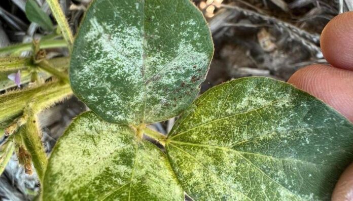 Sin embargo, productores de los Grupos Regionales del sur de Córdoba advierten que no es solo el déficit hídrico el que compromete su desarrollo: en el envés de las hojas, una fina telaraña delata la presencia de un enemigo diminuto pero voraz.