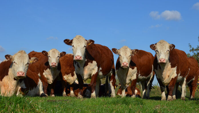Plantel de bovinos Hereford al pie de la Cordillera Patagónica